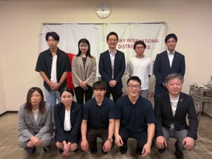 2025年7月18日、金沢ローターアクトクラブにて所信表明例会を開催しました。小田会長の進行のもと、クラブターゲットや年間活動予定の発表が行われ、各委員がそれぞれの目標や想いを語りました。新年度のスタートにふさわしく、クラブの方針が明確になるとともに、メンバー間の結束も一層強まりました。ご来賓としてお越しいただいた地区RA委員長・中島様からは、温かいご講評と励ましの言葉をいただき、今後の活動への意欲がさらに高まりました。例会後は記念撮影と懇親会を行い、交流を深める有意義な時間となりました。